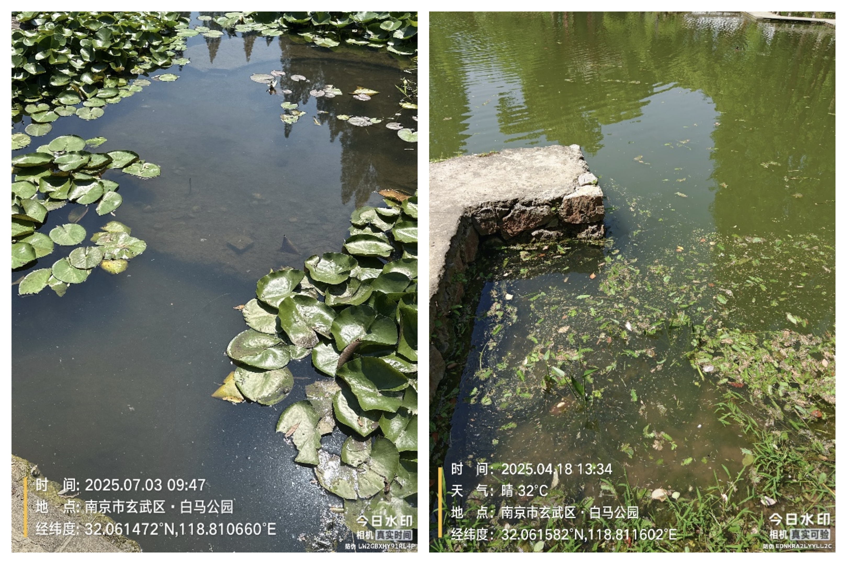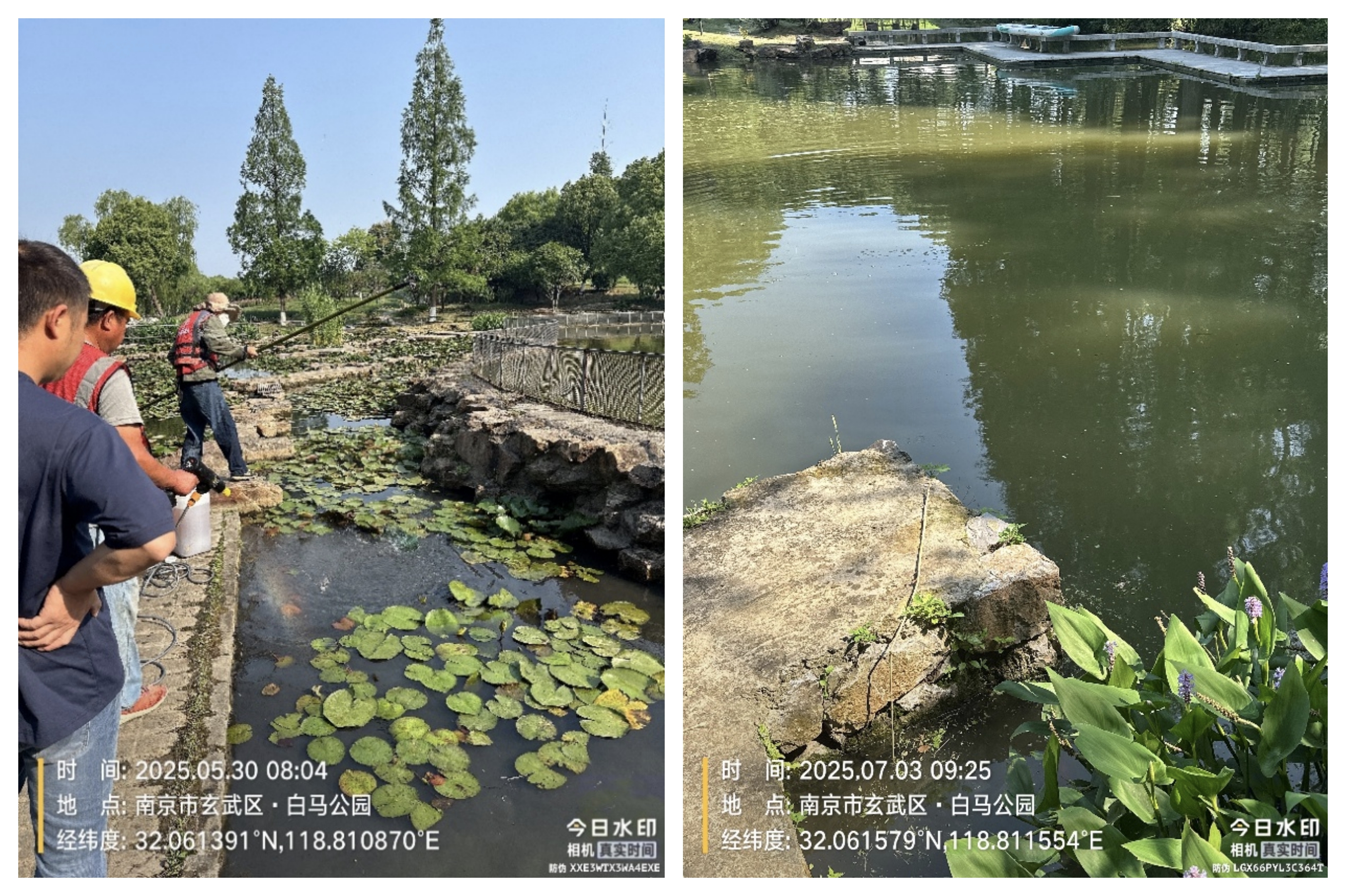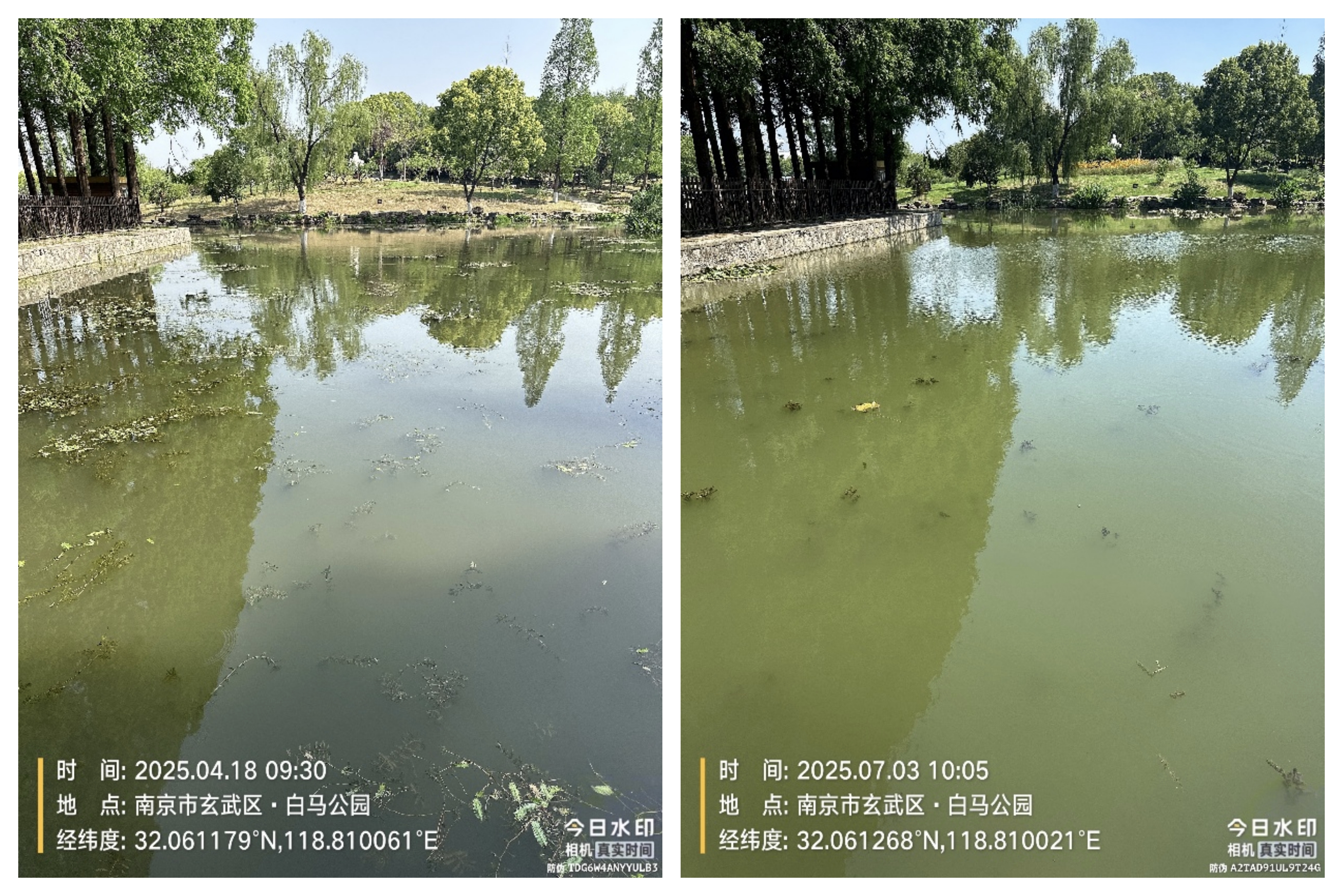 在鐘山風景區(qū)的蔥蘢懷抱中,玄武區(qū)白馬公園的白馬湖曾悄然蒙塵。這片51.6畝的水域,由低洼水塘拓展而生,二十余載歲月里,流動的韻律日漸遲滯,水華滋蔓,感官蒙翳,仿佛明珠失卻了靈動光華。